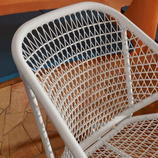 Fauteuil bas SIXTIES de FERMOB en tube d'aluminium. Structure légère en aluminium (diamètre 20 mm) combinée à une assise en résine technique haute densité (polymère tressé). Tressage Criss Cross aéré